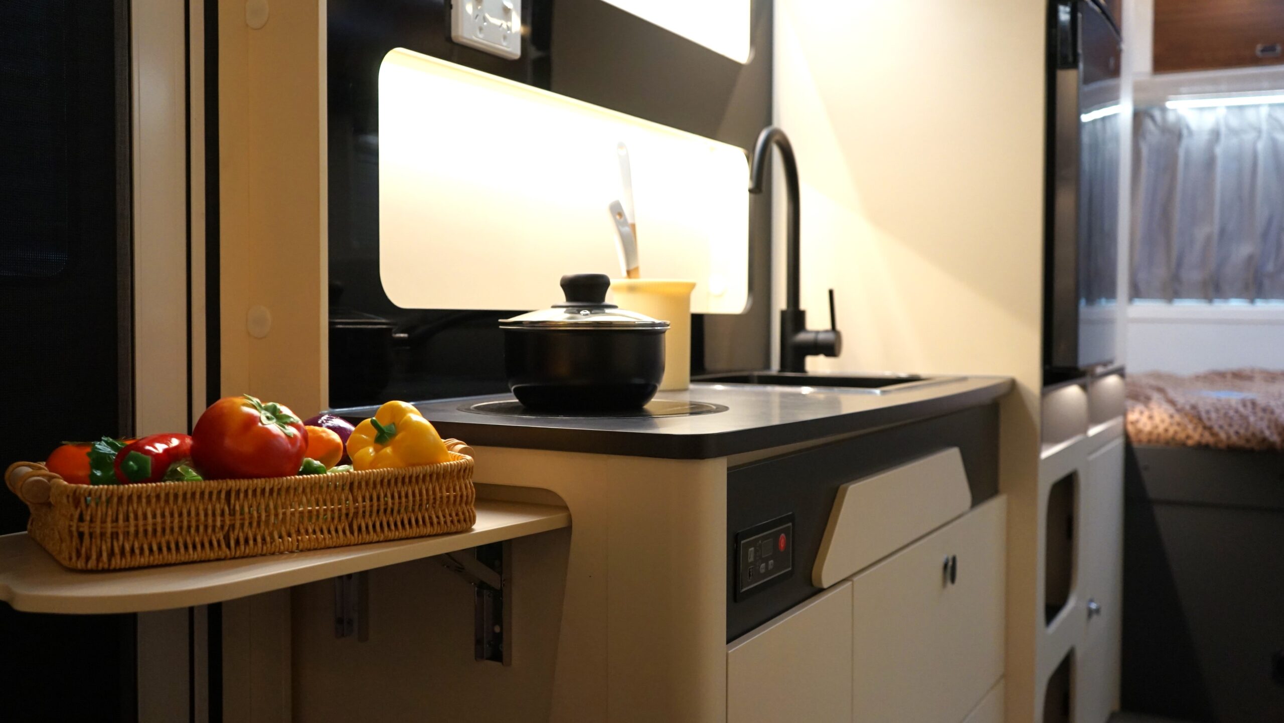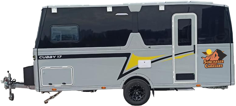The Cubby 17 is a 17ft caravan with solar, designed for off-grid adventures with modern convenience. It features a comfortable sleeping area with bunk options, an internal shower and toilet, and a fully equipped kitchen with an induction cooktop. With a 200W solar system, lithium battery power, and lightweight construction, the Cubby 17 is perfect for travellers looking for self-sufficient exploration.